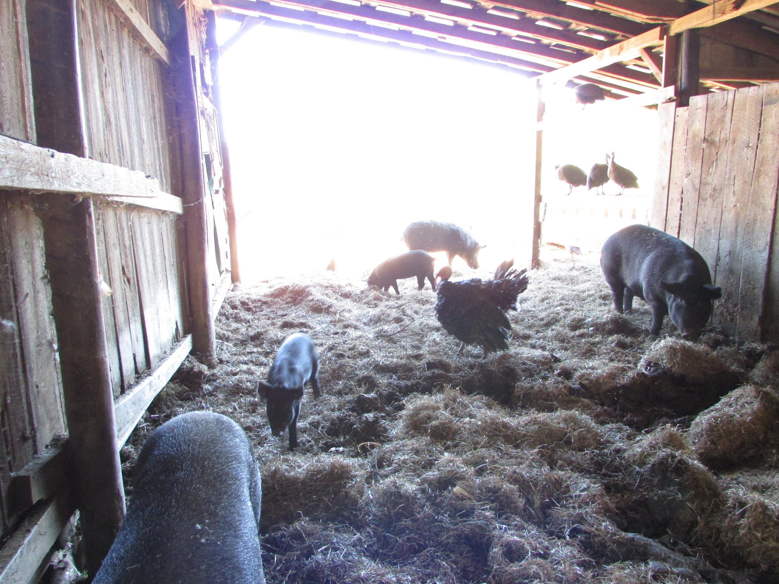 This pork is fatty and flavorful. Our pigs flourish in fresh air and sunshine. They are the rare heritage Mulefoot breed, and are raised on a small scale on deep bedding, incorporating regenerative and Korean Natural Farming methods. They consume raw soured skim milk, fresh hay, local non-GMO soaked whole grains, less corn, no soy - with a diet low in unhealthy PUFAs (polyunsaturated fatty acids), and higher in healthy saturated fats. Our pigs’ fat is superior, and creates greater health for those who consume it. Our pigs never receive hormones, antibiotics, wormers, or vaccines. The pork is processed on a small scale, locally.